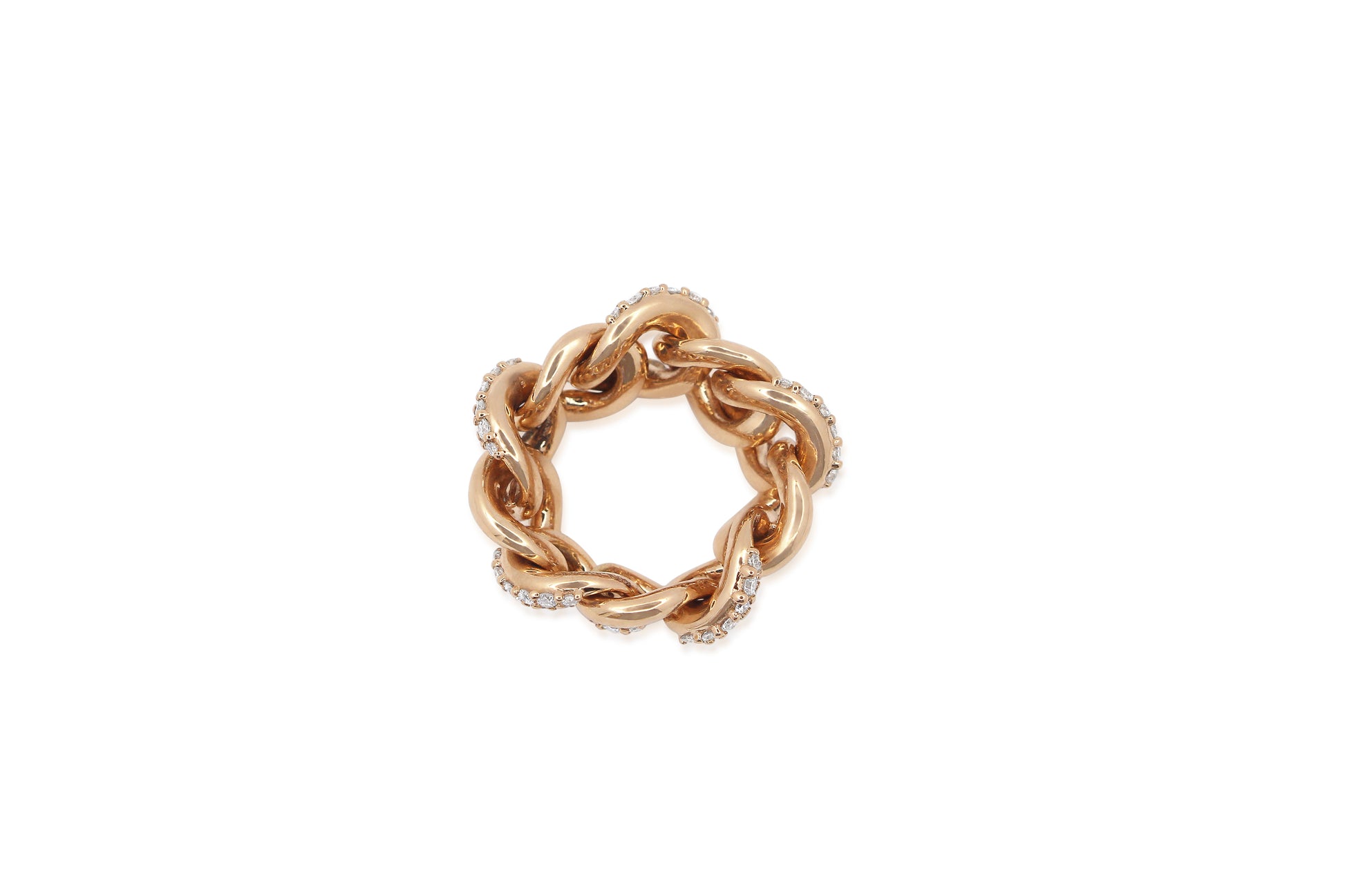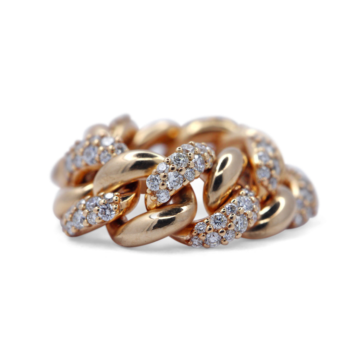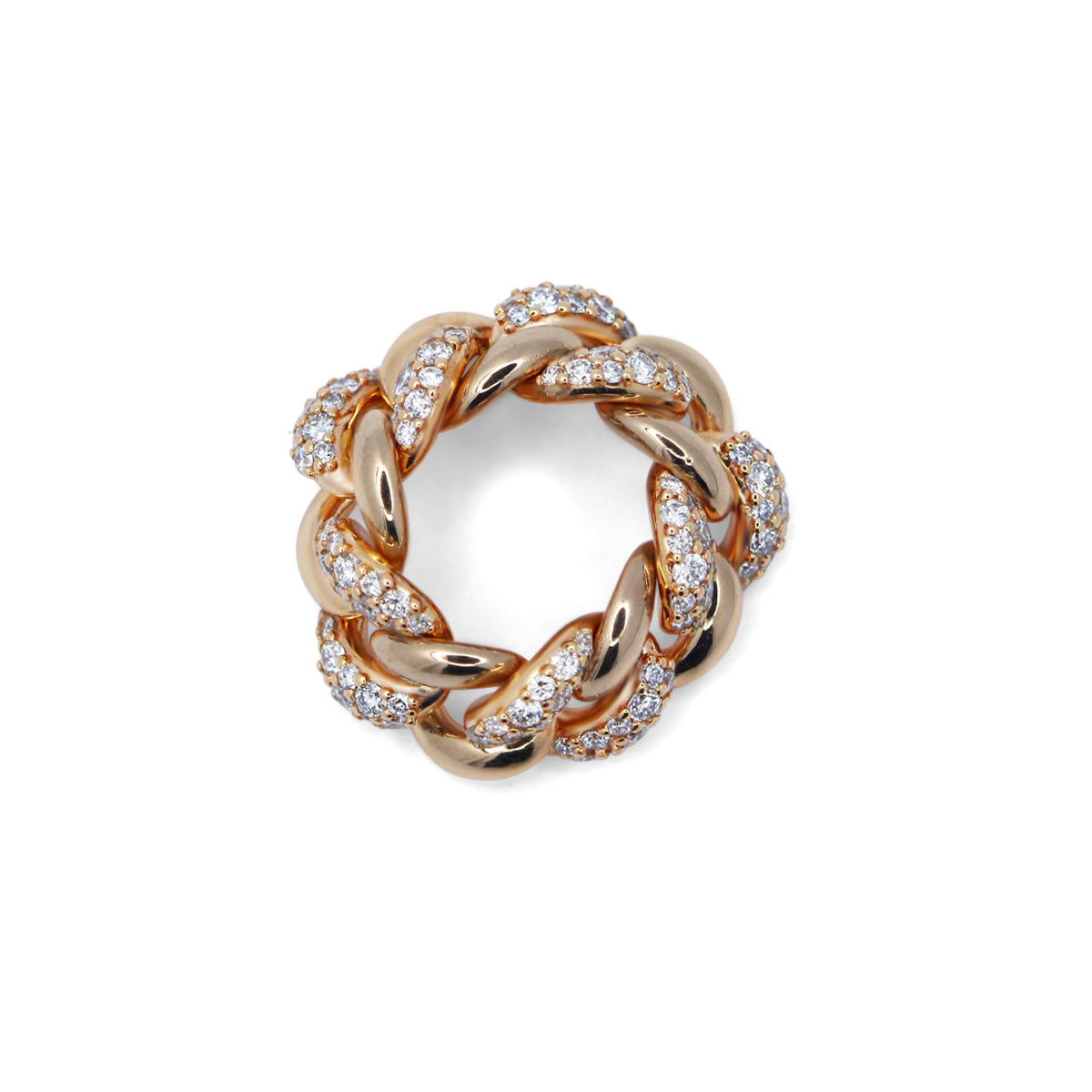 Our signature cuban link is crafted from 18k rose gold and Snow-set with excellent round brilliant-cut diamonds.