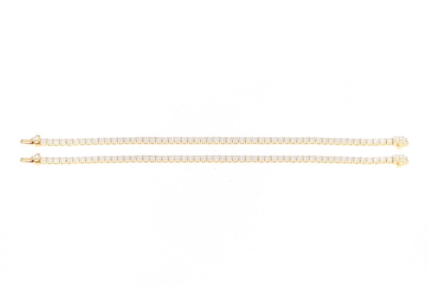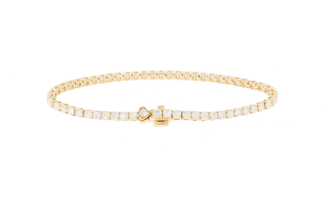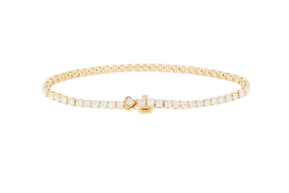 Crafted from 18k yellow gold featuring excellent round brilliant cut diamonds on a 4 prong setting with our Signature SJ clasp.