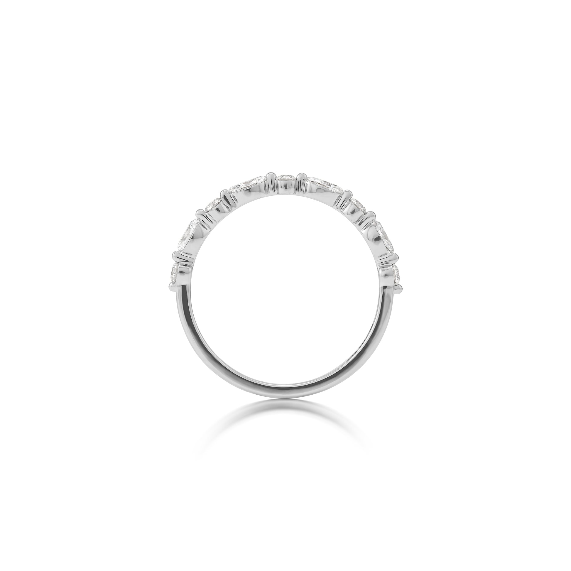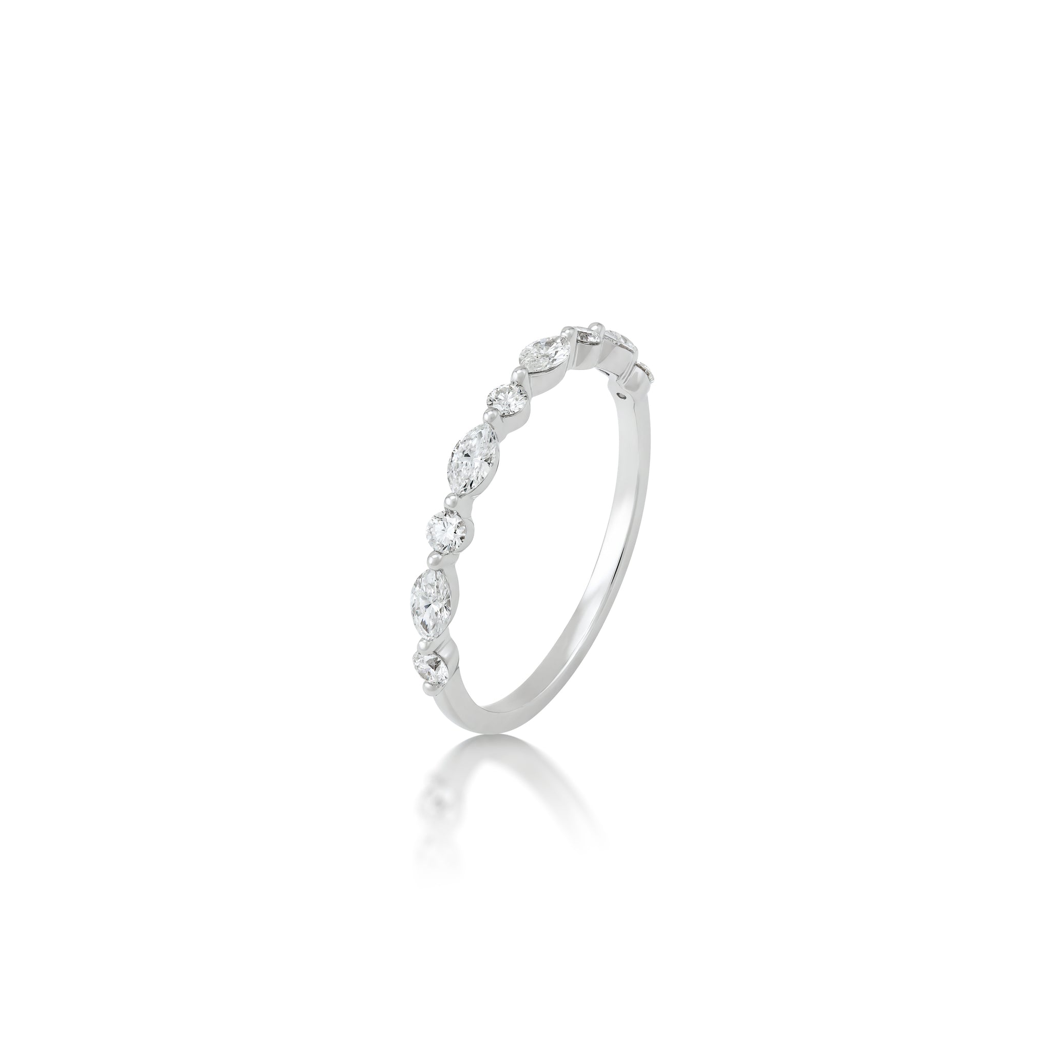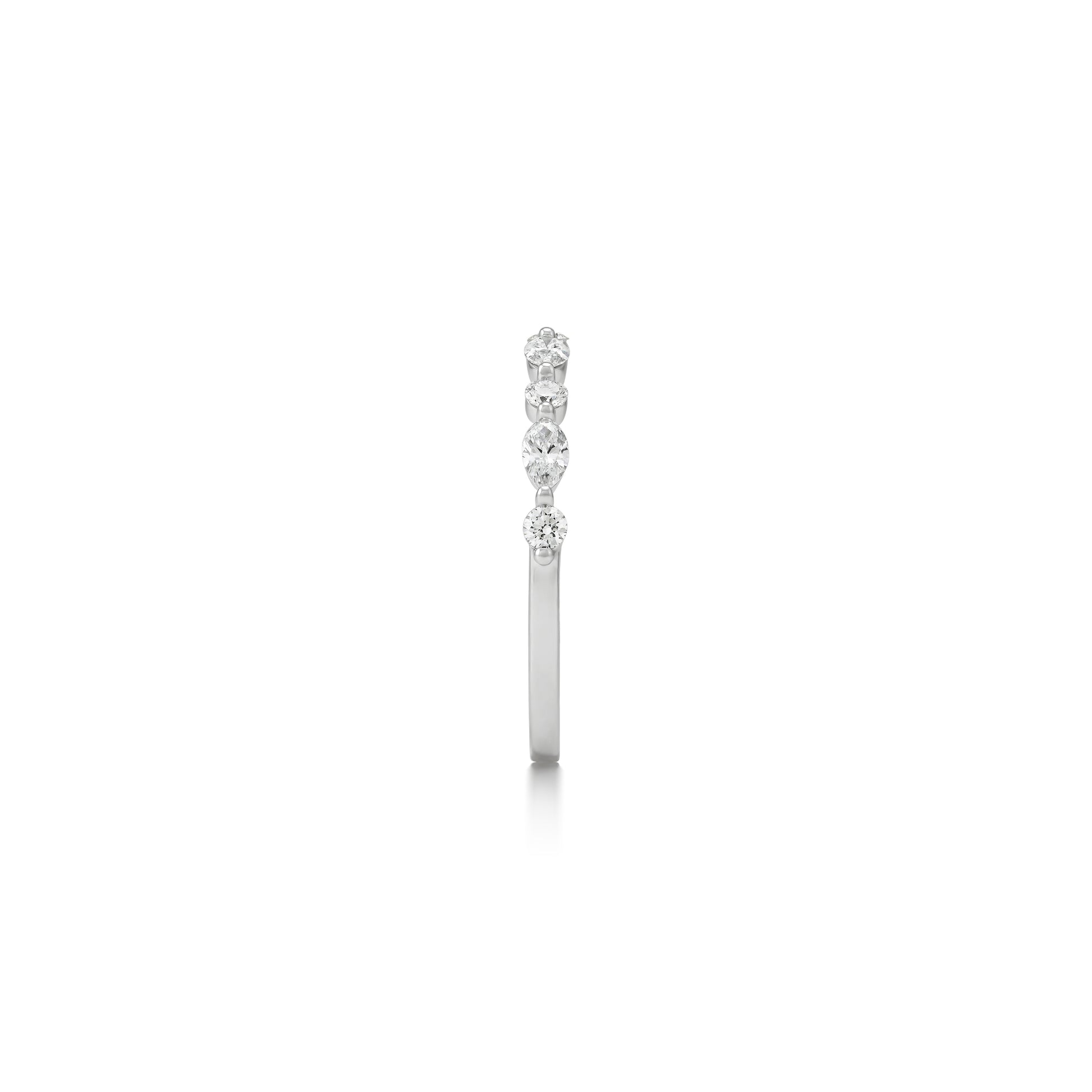 Alternating round and marquise brilliant-cut diamonds prong-set in 18k white gold.